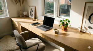 • デスクマットの導入: 透明なPVC(塩化ビニール)マットなら、机のデザインを損なわずに広範囲をカバーできます。また、最近ではインテリア性の高いレザー調のマットや、手触りの良いフェルト製マットも人気です。