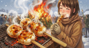 会場では、長い竹の先に刺したお団子を火で炙る光景が見られます。これは単なるレジャーではなく、大切な「祈り」の形です。