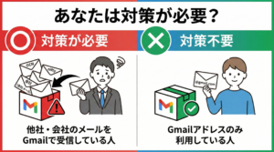 - お仕事の独自ドメインメールを使っている:(例:info@yourcompany.jp など、自社のメールをGmailに集約している)