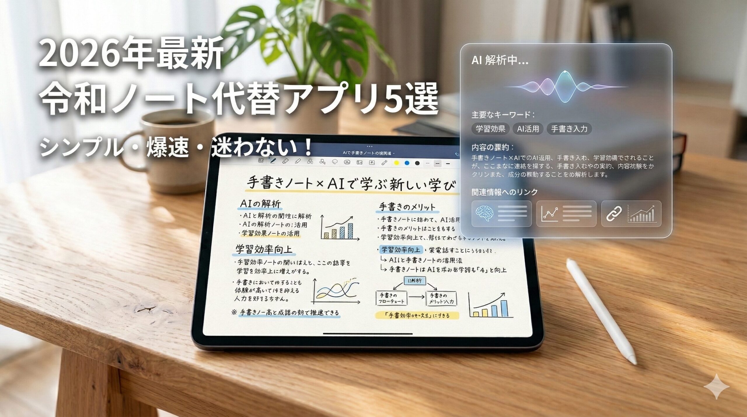 2026年の今、ノートアプリには驚くほど便利なAI(人工知能)が搭載されるようになりました。「AIなんて難しそう……」と思うかもしれませんが、実はシンプルに使いたい人こそ、AIに頼るのが近道です。